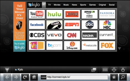 Trên giao diện chính, Kylo sẽ liệt kê một loạt các trang web hay liên quan đến tin tức, âm nhạc, phim... như CNN, MTV...